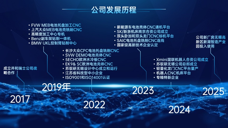 蘇馭研公司是集設計、研發、生產、銷售和服務為一體的高效率與高精密數控加工中心機床和機器人組合機床的專業制造商,設備產品廣泛應用于新能源汽車制造、航空航天、精密模具、電子半導體等行業。公司以技術創新為核心驅動力,通過持續投入研發和產學研合作,致力于高品質數控加工和機器人技術的革新與產業化。公司已通過ISO9001質量體系和ISO14001環境管理體系認證及多項行業資質,并與國內外知名高校、科研機構建立戰略合作,為客戶提供標準化或定制化加工解決方案。