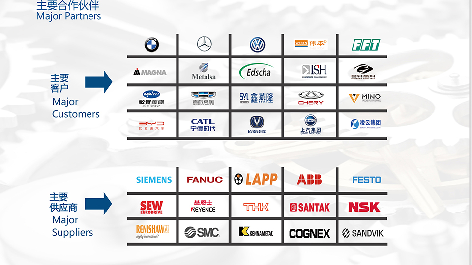 蘇馭研公司本著“成為國際智能裝備先進和標桿企業品牌”的愿景,踐行“讓制造更容易”的使命,以客戶為中心,已經成為寶馬、戴姆勒、上汽大眾、一汽大眾、奇瑞、比亞迪、卡斯馬、敏實、愛孚迪、海尼興等知名公司的合格或優質機床設備供應商。
