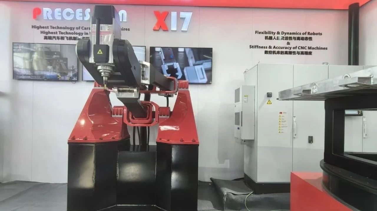 X17機器人機床優點是柔性好和布局容易;一般工業關節機器人的缺點是剛性不足、精度較低、銑削加工效率較低,但X17混聯機器人與傳統的工業機器人對比,X17混聯機器人能具有更高的剛性,精度和銑削加工效率。