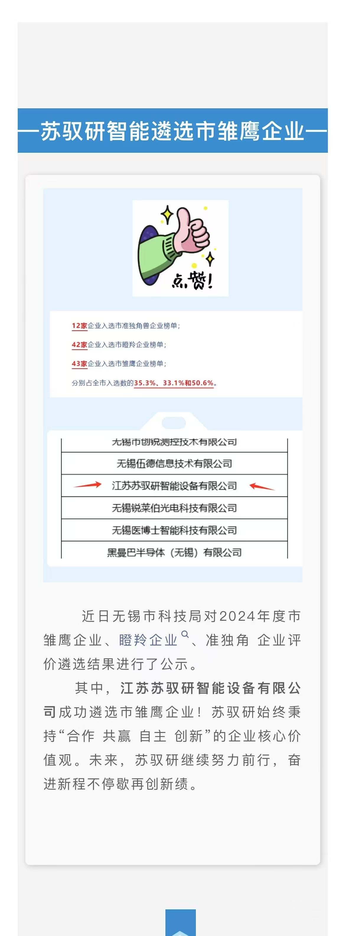 熱烈慶祝蘇馭研智能遴選市雛鷹企業